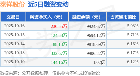 证券之星消息,10月16日,泰祥股份(301192)融资买入680.26万元,融资偿还449.71万元,融资净买入230.55万元,融资余额9924.67万元。