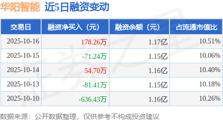 证券之星消息,10月16日,华阳智能(301502)融资买入428.74万元,融资偿还250.48万元,融资净买入178.26万元,融资余额1.17亿元。