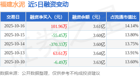 证券之星消息,10月16日,福建水泥(600802)融资买入294.15万元,融资偿还192.19万元,融资净买入101.96万元,融资余额3.61亿元,近20个交易日中有14个交易日出现融资净买入。
