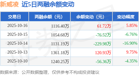 证券之星消息,10月16日,新威凌(920634)融资买入128.72万元,融资偿还67.0万元,融资净买入61.72万元,融资余额1116.4万元。