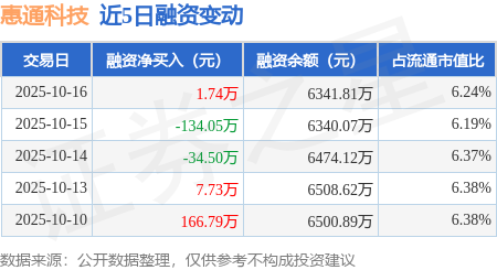 证券之星消息,10月16日,惠通科技(301601)融资买入172.87万元,融资偿还171.13万元,融资净买入1.74万元,融资余额6341.81万元。