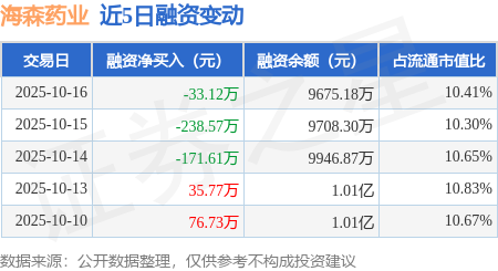 证券之星消息,10月16日,海森药业(001367)融资买入192.77万元,融资偿还225.89万元,融资净卖出33.12万元,融资余额9675.18万元。