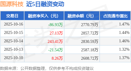 证券之星消息,10月16日,国源科技(920184)融资买入278.78万元,融资偿还365.71万元,融资净卖出86.93万元,融资余额2770.79万元。