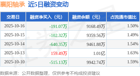 证券之星消息,10月16日,襄阳轴承(000678)融资买入389.11万元,融资偿还580.18万元,融资净卖出191.07万元,融资余额9168.49万元。