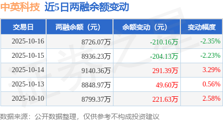 证券之星消息,10月16日,中英科技(300936)融资买入306.22万元,融资偿还516.38万元,融资净卖出210.16万元,融资余额8726.07万元。