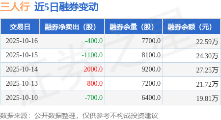 证券之星消息,10月16日,三人行(605168)融资买入553.46万元,融资偿还971.71万元,融资净卖出418.25万元,融资余额2.27亿元。
