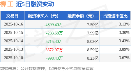 证券之星消息,10月16日,柳 工(000528)融资买入7737.23万元,融资偿还1.26亿元,融资净卖出4899.4万元,融资余额7.5亿元,近20个交易日中有11个交易日出现融资净买入。