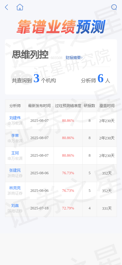 如果您对这家公司感兴趣,可以参考证星研究院统计的思维列控的分析师业绩预测数据,其中根据申万宏源的分析师刘建伟预测公司未来PE为14.0(更多特色估值数据尽在证星研究院,所有数据均来源公开资料,期且所有资料都存在一定时间滞后,所有相关数据均不可作为投资决策单一依据)。