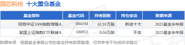重仓国芯科技的公募基金请见下表: