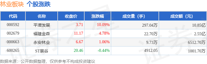 从资金流向上来看,当日林业板块主力资金净流入3.78亿元,游资资金净流出1.49亿元,散户资金净流出2.29亿元。林业板块个股资金流向见下表: