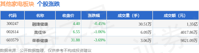 从资金流向上来看,当日其他家电板块主力资金净流出973.33万元,游资资金净流入860.93万元,散户资金净流入112.4万元。其他家电板块个股资金流向见下表: