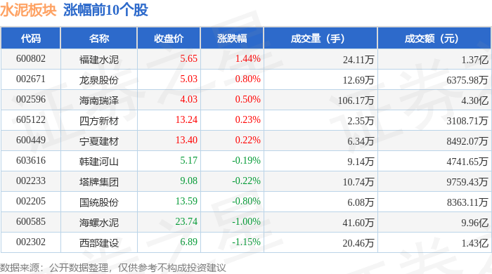 从资金流向上来看,当日水泥板块主力资金净流出3.65亿元,游资资金净流入3774.01万元,散户资金净流入3.28亿元。水泥板块个股资金流向见下表: