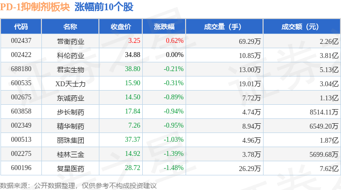 从资金流向上来看,当日PD-1抑制剂板块主力资金净流出7.37亿元,游资资金净流入2.46亿元,散户资金净流入4.91亿元。PD-1抑制剂板块个股资金流向见下表: