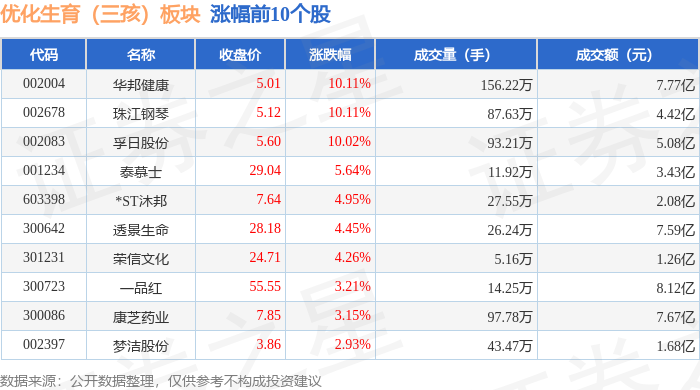 从资金流向上来看,当日优化生育(三孩)板块主力资金净流出12.62亿元,游资资金净流出1.46亿元,散户资金净流入14.08亿元。优化生育(三孩)板块个股资金流向见下表: