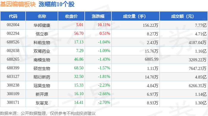 证券之星消息,10月17日基因编辑板块较上一交易日下跌0.98%,劲嘉股份领跌。当日上证指数报收于3839.76,下跌1.95%。深证成指报收于12688.94,下跌3.04%。基因编辑板块个股涨跌见下表: