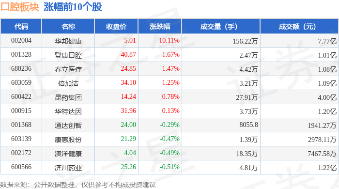 证券之星消息,10月17日口腔板块较上一交易日下跌2.16%,中洲特材领跌。当日上证指数报收于3839.76,下跌1.95%。深证成指报收于12688.94,下跌3.04%。口腔板块个股涨跌见下表: