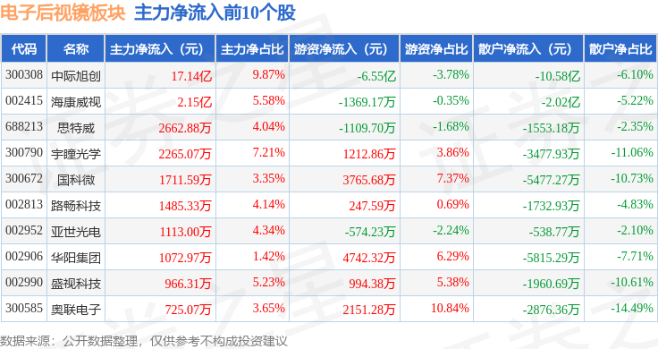 从资金流向上来看,当日电子后视镜板块主力资金净流入2359.52万元,游资资金净流出4884.36万元,散户资金净流入2524.85万元。电子后视镜板块个股资金流向见下表: