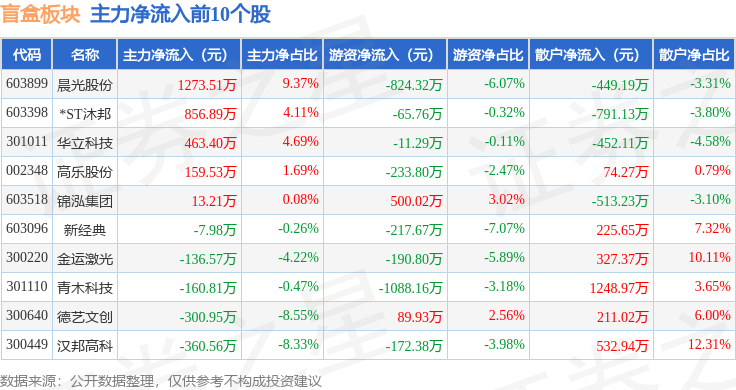 从资金流向上来看,当日盲盒板块主力资金净流出4.31亿元,游资资金净流入9198.66万元,散户资金净流入3.39亿元。盲盒板块个股资金流向见下表: