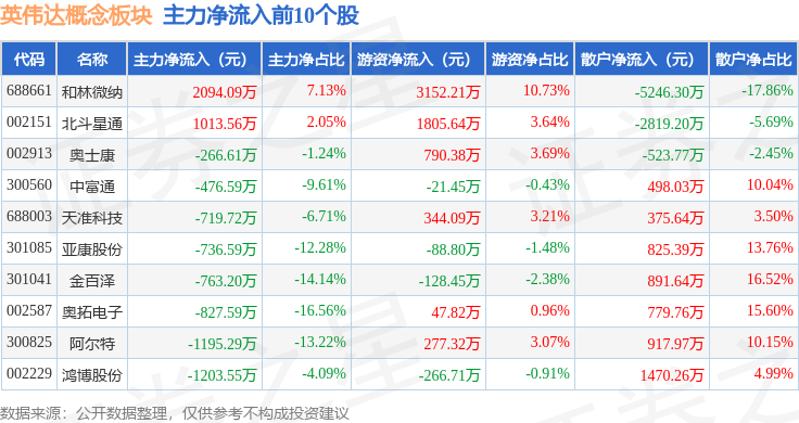 从资金流向上来看,当日英伟达概念板块主力资金净流出38.06亿元,游资资金净流入11.28亿元,散户资金净流入26.78亿元。英伟达概念板块个股资金流向见下表: