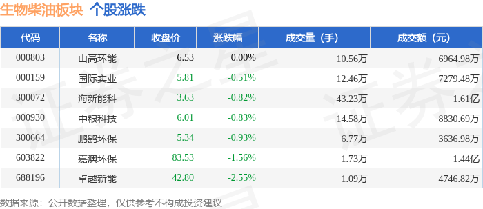 证券之星消息,10月17日生物柴油板块较上一交易日下跌1.09%,卓越新能领跌。当日上证指数报收于3839.76,下跌1.95%。深证成指报收于12688.94,下跌3.04%。生物柴油板块个股涨跌见下表: