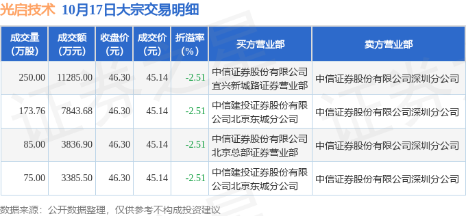 证券之星消息,10月17日光启技术发生大宗交易,交易数据如下: