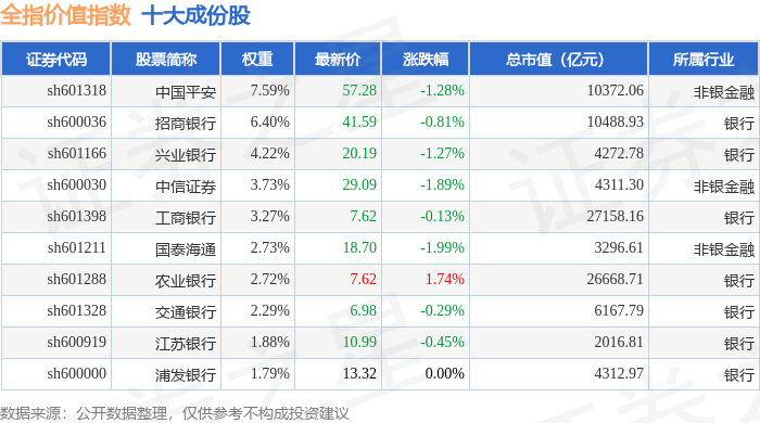 证券之星消息,10月17日,全指价值(000058)指数报收于4585.88点,跌1.11%,成交1363.88亿元,换手率0.56%。当日该指数成份股中,上涨的有20家,农业银行以1.74%的涨幅领涨,下跌的有123家,石英股份以7.05%的跌幅领跌。