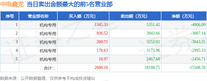 从龙虎榜公布的当日买卖数据来看,机构合计净卖出1.55亿元。