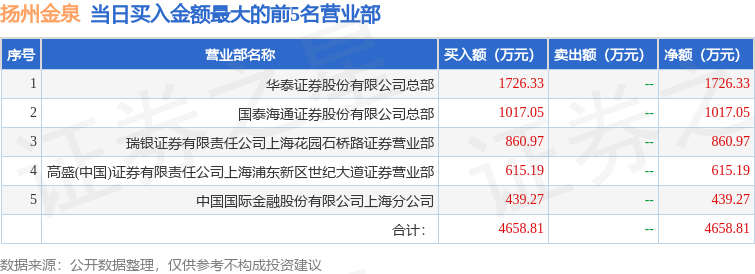 证券之星消息,沪深交易所2025年10月17日公布的交易公开信息显示,扬州金泉(603307)因有价格涨跌幅限制的日换手率达到20%的前五只证券登上龙虎榜。此次是近5个交易日内第3次上榜。