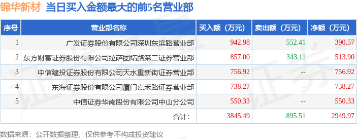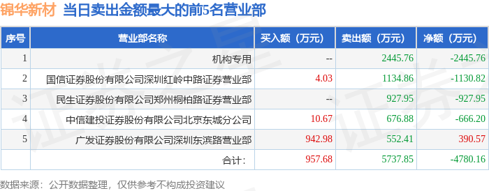 从龙虎榜公布的当日买卖数据来看,机构合计净卖出2445.76万元。呼家楼等知名游资榜上有名。(知名游资呼家楼一般指中信建投证券股份有限公司北京东城分公司席位,根据市场资料整理,仅供参考)