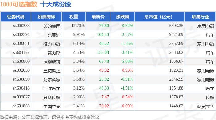 1000可选(399384)指数十大成份股详情如下: