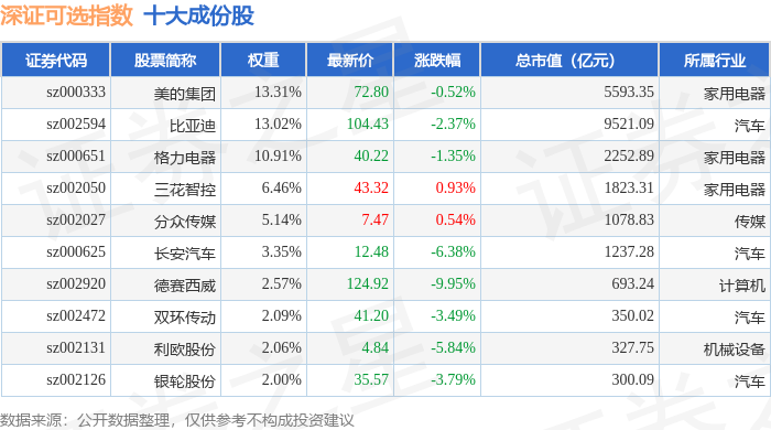 资金流向方面,深证可选(399616)指数成份股当日主力资金净流出合计60.45亿元,游资资金净流入合计17.13亿元,散户资金净流入合计43.32亿元。成份股资金流向详情见下表: