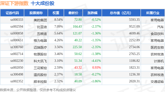 资金流向方面,深证下游(399706)指数成份股当日主力资金净流出合计88.54亿元,游资资金净流入合计23.09亿元,散户资金净流入合计65.44亿元。成份股资金流向详情见下表: