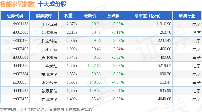 资金流向方面,智能家居(399996)指数成份股当日主力资金净流出合计152.61亿元,游资资金净流入合计54.84亿元,散户资金净流入合计97.77亿元。成份股资金流向详情见下表: