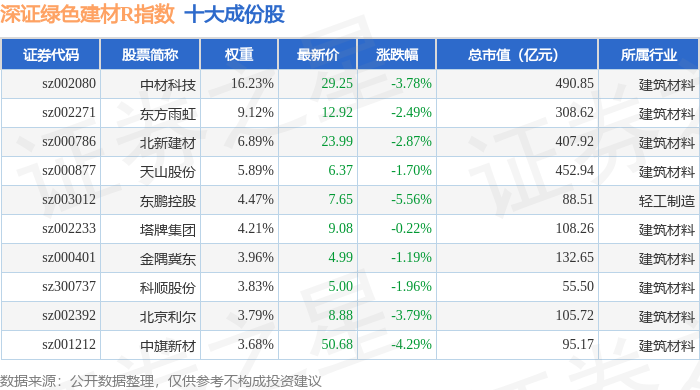 深证绿色建材R(470077)指数十大成份股详情如下: