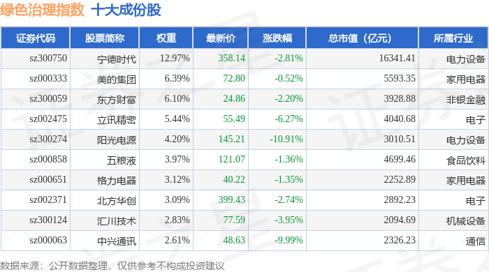 资金流向方面,绿色治理(980058)指数成份股当日主力资金净流出合计161.11亿元,游资资金净流入合计49.84亿元,散户资金净流入合计111.27亿元。成份股资金流向详情见下表: