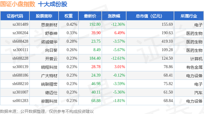 国证小盘(980202)指数十大成份股详情如下: