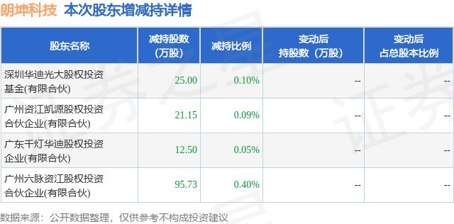 证券之星消息,10月17日朗坤科技发布公告《朗坤科技:关于股东及其一致行动人减持公司股份时间届满暨减持结果的公告》,其股东深圳华迪光大股权投资基金(有限合伙)、广州资江凯源股权投资合伙企业(有限合伙)、广东千灯华迪股权投资企业(有限合伙)、广州六脉资江股权投资合伙企业(有限合伙)于2025年8月20日至2025年10月15日间合计减持154.38万股,占公司目前总股本的0.6399%,变动期间该股股价上涨1.44%,截止10月15日收盘报20.39元。