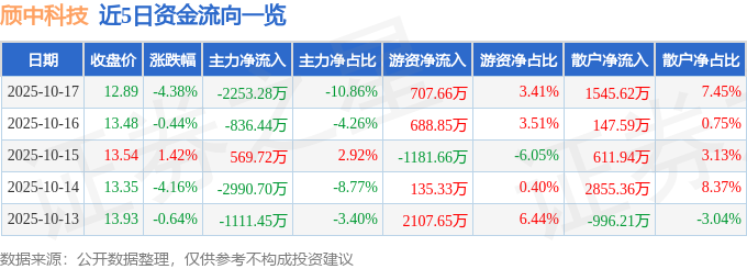 10月17日的资金流向数据方面,主力资金净流出2253.28万元,占总成交额10.86%,游资资金净流入707.66万元,占总成交额3.41%,散户资金净流入1545.62万元,占总成交额7.45%。