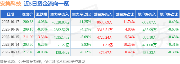 10月17日的资金流向数据方面,主力资金净流出8328.83万元,占总成交额11.25%,游资资金净流入8688.69万元,占总成交额11.74%,散户资金净流出359.87万元,占总成交额0.49%。
