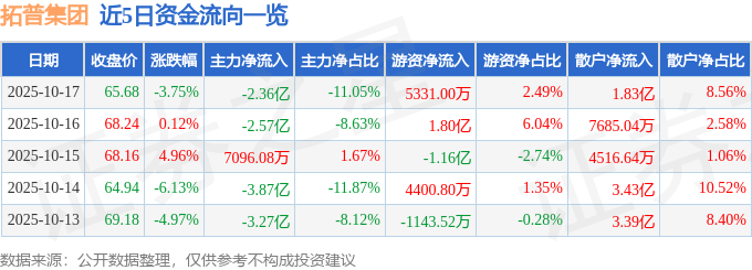 证券之星消息,截至2025年10月17日收盘,拓普集团(601689)报收于65.68元,下跌3.75%,换手率1.86%,成交量32.24万手,成交额21.4亿元。