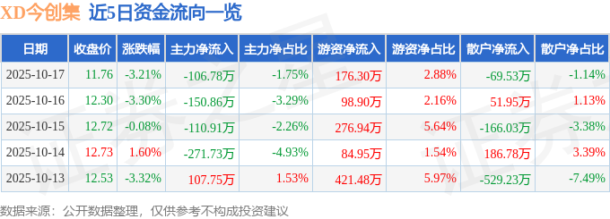 10月17日的资金流向数据方面,主力资金净流出106.78万元,占总成交额1.75%,游资资金净流入176.3万元,占总成交额2.88%,散户资金净流出69.53万元,占总成交额1.14%。