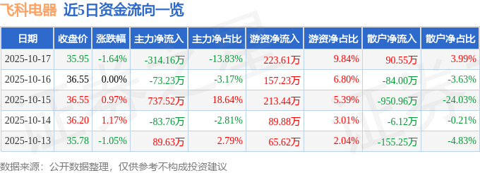 10月17日的资金流向数据方面,主力资金净流出314.16万元,占总成交额13.83%,游资资金净流入223.61万元,占总成交额9.84%,散户资金净流入90.55万元,占总成交额3.99%。