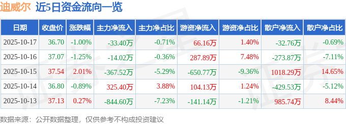 证券之星消息,截至2025年10月17日收盘,迪威尔(688377)报收于36.7元,下跌1.0%,换手率0.66%,成交量1.28万手,成交额4722.55万元。