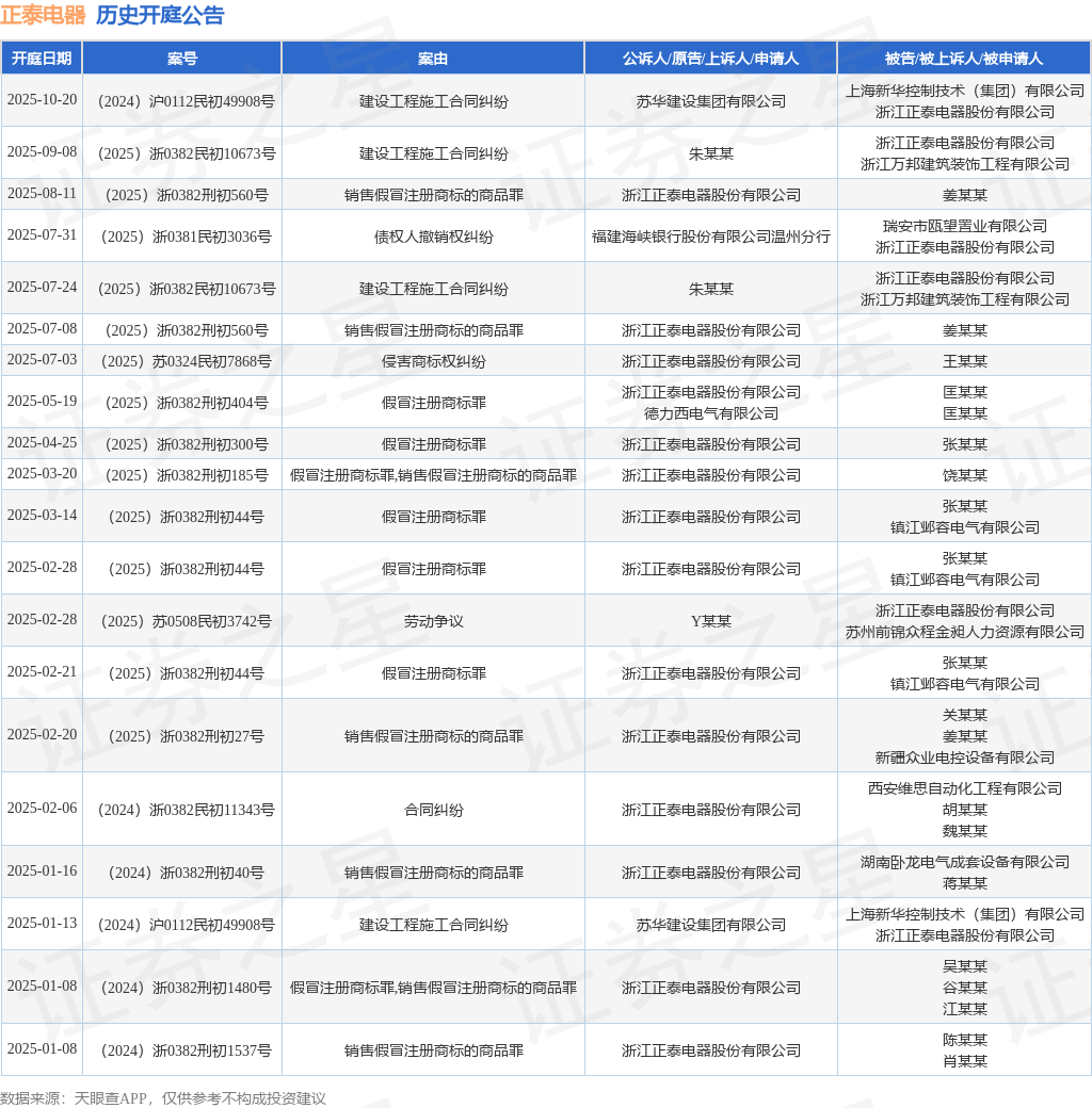 证券之星消息,根据天眼查APP显示,近日公布了一则浙江正泰电器股份有限公司作为被告/被上诉人的开庭公告,详细内容如下: