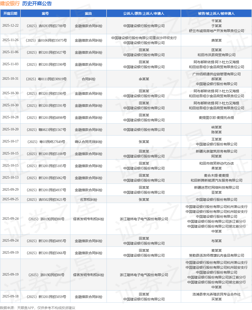 证券之星消息,根据天眼查APP显示,近日公布了一则中国建设银行股份有限公司作为原告/上诉人的开庭公告,详细内容如下:
