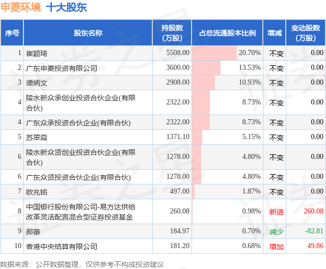 根据申菱环境2025年中报公布的十大股东详情如下: