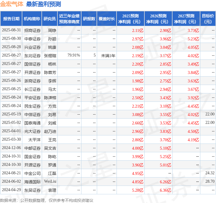 金宏气体2025年中报显示,公司主营收入13.14亿元,同比上升6.65%;归母净利润8220.13万元,同比下降48.65%;扣非净利润6723.39万元,同比下降45.1%;其中2025年第二季度,公司单季度主营收入6.91亿元,同比上升7.6%;单季度归母净利润3819.81万元,同比下降54.3%;单季度扣非净利润3797.3万元,同比下降47.46%;负债率56.75%,投资收益123.97万元,财务费用2605.54万元,毛利率29.69%。