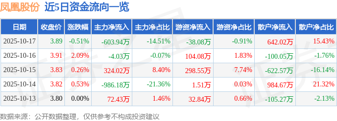 证券之星消息,截至2025年10月17日收盘,凤凰股份(600716)报收于3.89元,下跌0.51%,换手率1.14%,成交量10.66万手,成交额4161.94万元。