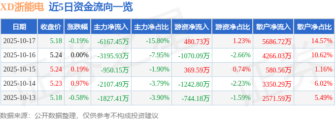 10月17日的资金流向数据方面,主力资金净流出6167.45万元,占总成交额15.8%,游资资金净流入480.73万元,占总成交额1.23%,散户资金净流入5686.72万元,占总成交额14.57%。