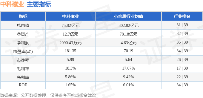 中科磁业2025年中报显示,公司主营收入3.47亿元,同比上升38.46%;归母净利润2090.43万元,同比上升271.78%;扣非净利润1740.84万元,同比上升341.29%;其中2025年第二季度,公司单季度主营收入1.93亿元,同比上升41.27%;单季度归母净利润746.59万元,同比上升373.05%;单季度扣非净利润611.26万元,同比上升164.89%;负债率22.79%,投资收益108.01万元,财务费用-18.86万元,毛利率18.3%。中科磁业(301141)主营业务:主要从事永磁材料的研发、生产和销售。